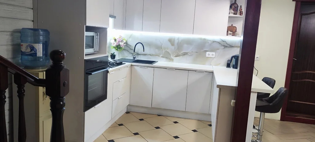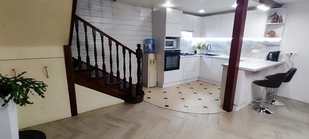 Облицованный кирпичом утеплённый брусовой дом, сделан очень добротно. Приятный ремонт. Дом небольшой, 140 м2. в нём тепло и уютно. Есть 4 раздельные комнаты, очень приятная и комфортная кухня-гостиная 30 м2, и 2 сан. узла в доме. Все коммуникации в отличном состоянии, всё работает. Дом находится на поселковой земле, Категории земель: СНТ.