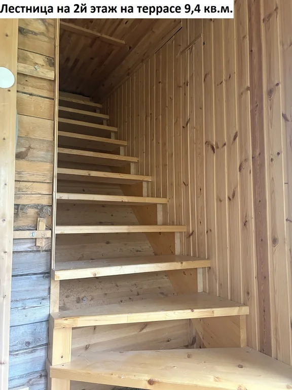 На второй этаж деревянная, сосновая лестница.
