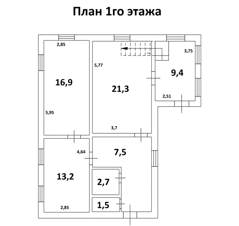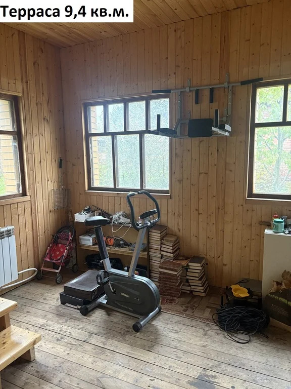 На первом этаже: спальня 21,3 кв.м. (стол-книжка), комната 16,9 кв.м. (шкаф книжный, сервант, диван, стол), кухня 7,5 кв.м., (диван, кухонный гарнитур из 17 предметов, плита газовая, духовой шкаф, стол, шкаф-колонка, раковина, газовый котел), прихожая 13,2 кв.м. (шкаф-купе трехдверный с зеркалом, стол журнальный), терраса 9,4 кв.м. (спортивные турники, лестница на 2й этаж), ванная 2,7 кв.м. (ванная, раковина, зеркало, стиральная машинка), туалет 1,5 кв.м. (унитаз).