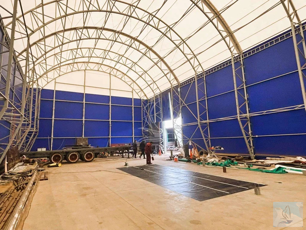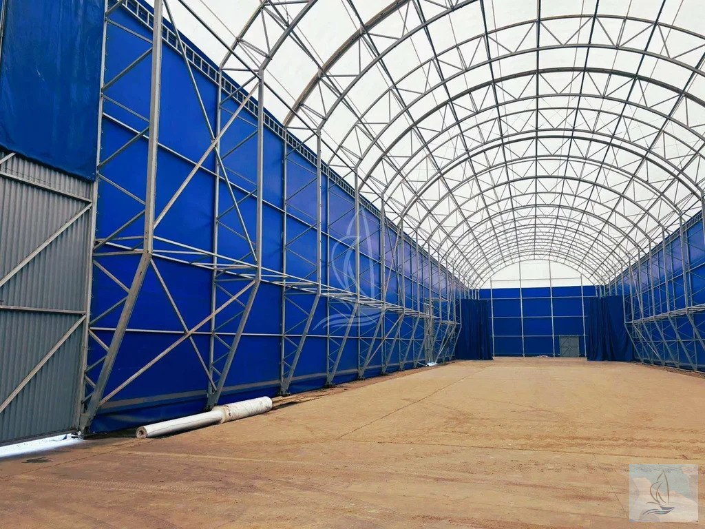 Конструкция — металлокаркас, покрытый тентовым материалом. Пол — бетонное основание.